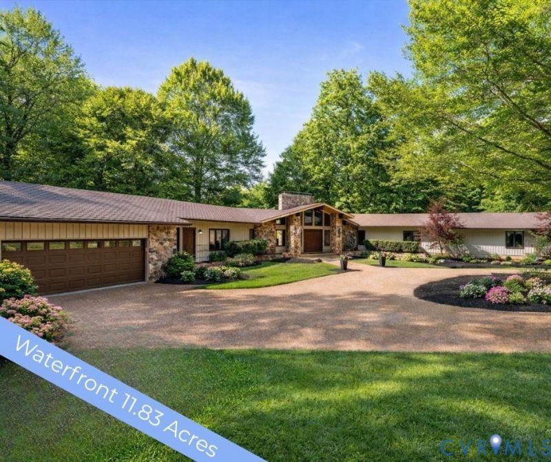 Tucked away on 11.39 private acres in the heart of Powhatan, this waterfront estate offers a rare blend of seclusion, design, and convenience-located just seconds from the James River and only minutes to Route 60, Route 288, and Short Pump. Designed with intention and built to impress, the home showcases a striking combination of natural stone, rich wood tones, and bold architectural lines that immediately set it apart. Inside, a dramatic great room anchors the home, where soaring vaulted ceilings, walls of glass, and a stunning two-story stone fireplace frame serene views of the pond and surrounding woods. The layout is both functional and refined, with most living on the main level. At the center of the home, the chef's kitchen features leathered quartz countertops, premium appliances, and an oversized island, seamlessly connecting to both casual and formal dining spaces-ideal for entertaining or everyday living. The main level also includes a private office, a well-appointed mudroom and laundry space with built-ins, a half bath, and direct access to the attached garage. Three bedrooms are located on this level, including an exceptional primary suite designed as a true retreat. With four closets, a spa-inspired bath featuring a soaking tub and walk-in shower, and a private balcony overlooking the water, it offers both luxury and tranquility. The walk-out lower level expands the home's versatility with a second fireplace, a spacious living area, a fourth bedroom, full and half baths, and two additional flex rooms-perfect for a gym, workshop, guest space, or hobby areas. Outdoor living is just as intentional. A full-length upper deck captures peaceful sunset views, while the covered patio below extends the living space even further. The fenced yard provides the perfect space for pets or play, all surrounded by mature trees and water views that create a true sense of escape. Private, distinctive, and thoughtfully designed-this is more than a home. It's a property that offers a lifestyle few can replicate.